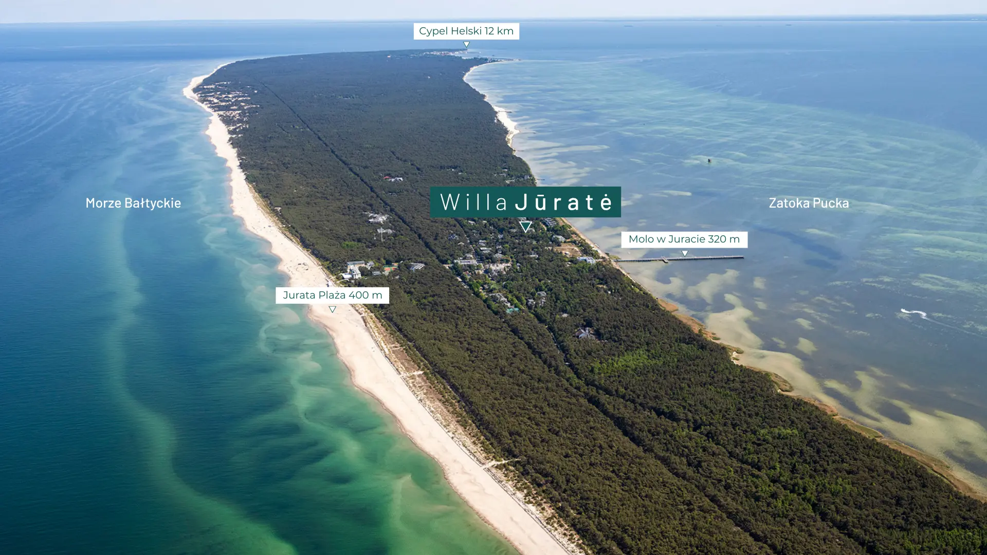 Historyczny kurort Półwyspu Helskiego zlokalizowany między otwartym morzem a spokojem zatoki. To właśnie tu naturalnie wpisuje się Willa Jūratė. W otoczeniu nadmorskich sosen, w powietrzu nasyconym jodem, żywicą i chłodną bryzą znad wody.