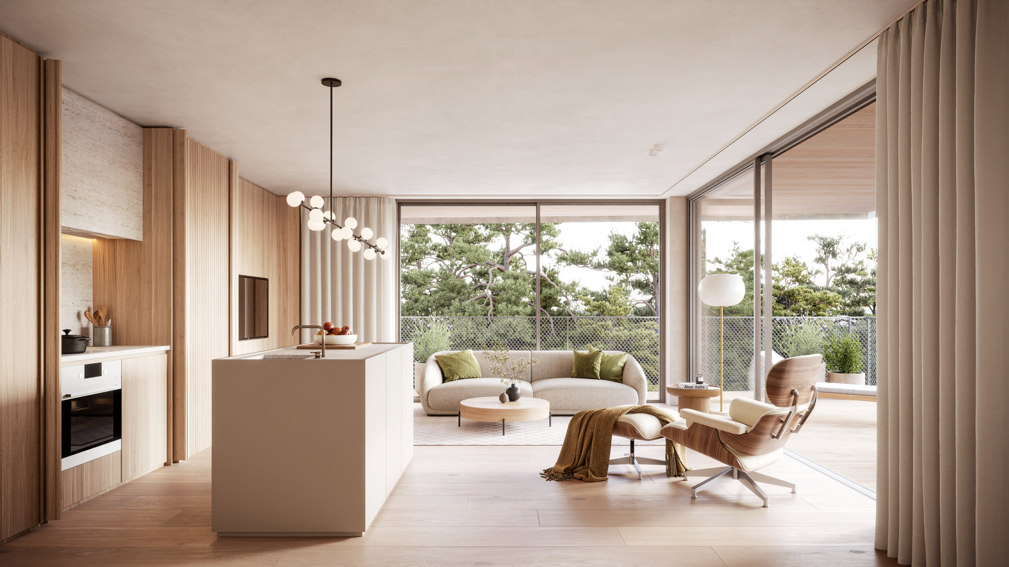 Naturalne, wykończone i wyposażone wnętrza w Willi Jūratė zostały zaprojektowane tak, aby w największym stopniu wyeksponować piękno płynące z natury.